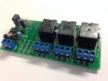 Adjustable Alternating 3 Relays 12V PIC Kit (#5454) This will turn ON one Relay at a time, while the others are OFF, then turn ON the next Relay, while all the others are OFF and so forth. It will then go to the first one and repeat the process as long as power is applied. The ON-Time is adjustable from 1 second to 4 minutes. Contact us for different times. There is a Jumper on board that will allow you to double the ON Times. The ON-Times are controlled by a Microchip PIC microprocessor. For those with Microchip PIC programming experience, the PIC12F510 may be removed and re-programmed as desired. The Relay contacts are rated for 7 Amps @ 125VAC. The contacts are Form C with a COM, NO & NC outputs available. The Relay is either a 833 or JS1 series. There is a LED on board that comes on whenever the Relay comes on. The input power is 12vdc. The Relay coil is 12v. There is an on-board Voltage Regulator (5v) for the PIC microprocessor. The kit is also offered as a "Built & Tested" for those that do not want to build it themselves. The PCB is 1.9" x 4.0", made out of .062", FR-4, 2-Layer, 1-ounce copper. It has 3 mounting holes.