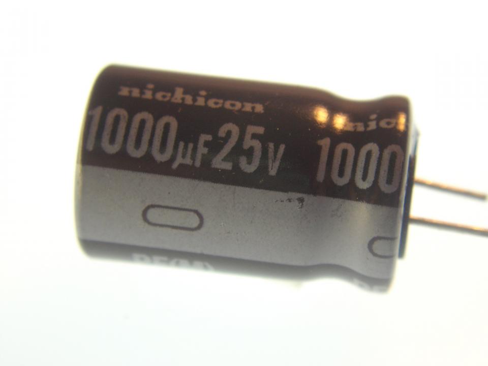 Aluminum Electrolytic Capacitor - Radial 1000uF @ 25v 105 degC Diameter = .500" Length = .800" Lead Spacing = .210" Manufacturer = Nichicon