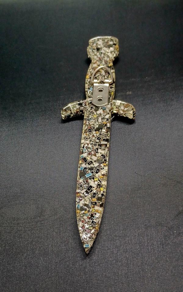 This unique handmade knife is made with real SMT parts. It also has a real small PCB attached gor decoration. It is approximately 10 inches. It is for decoration purposes only. It will make a great gift for that special person. Great Fathers day gift. Each one may vary slightly. I make these in Ocala Fl.