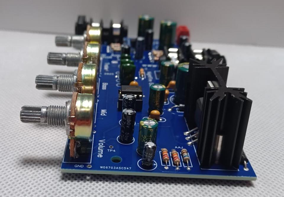 This Guitar Audio Amplifier Kit is a very clean-sounding 32-watt Guitar Amplifier. The Amplifier is rated at 0.03% THD with 15v into a 4 Ohm load. This is great for learning new songs or just playing along with your favorite music. And you get the fun of building it.