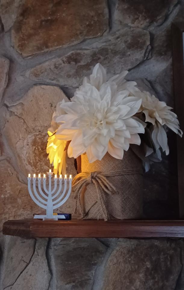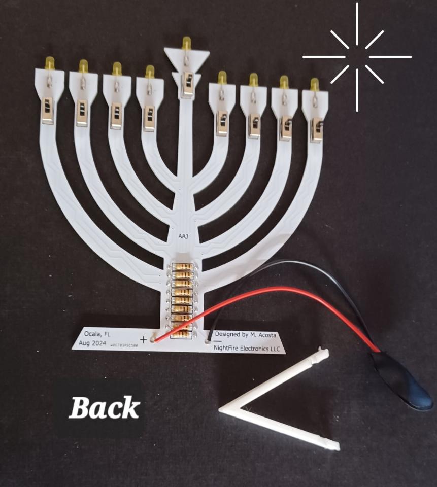 The nine-branched Hanukkah menorah is more popular in Jewish homes because it's needed for Hanukkah rituals. Each light has its own dedicated switch that can be turned off or on. Ready to use as is or in your own project. Runs off a 9 volt battery, not included. Made in Ocala, Fl. USA