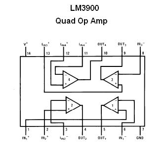 This kit is centered around the very popular National Semiconductor LM3900 Quad Op Amp in the Thru-Hole DIP-14 package. The LM3900is perhaps the world's most popular Quad Op Amp and has been used for decades!!