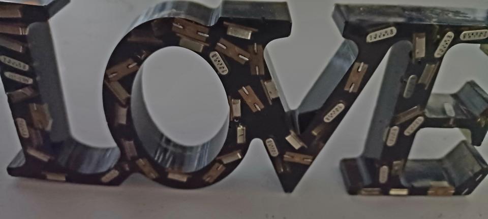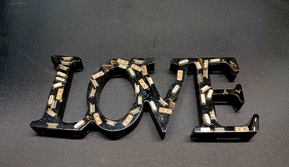 This unique handmade Love decoration is made with real SMT parts. . It is approximately 7.5 x 3 inches. It will make a great gift for that special person. Great Fathers day gift. Each one may vary slightly. I make these in Ocala Fl.